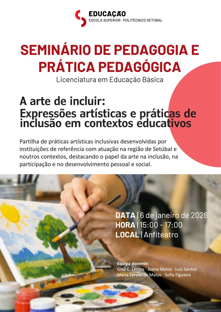 Seminário de Pedagogia e Prática Pedagógica Categorias Eventos Data 05/01/2026 6 janeiro 2026, das 15h00 às 17h00, Anfiteatro ESE Etiquetas:Seminário Partilhar: